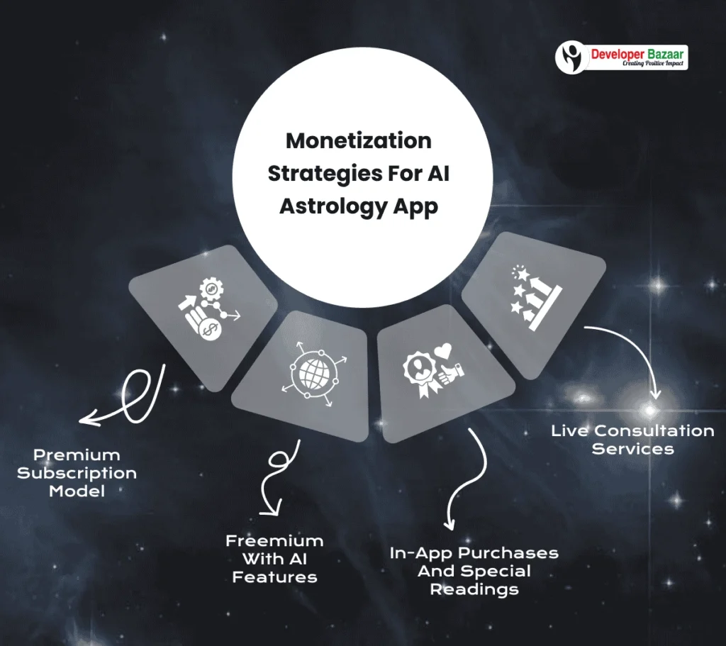 You can also sell premium astrological content packs targeting specific needs like love compatibility, financial forecasts, or spiritual growth guidance for additional revenue streams.