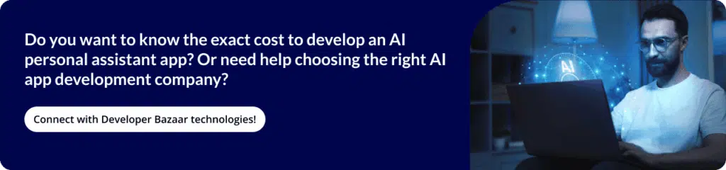 At Developer Bazaar Technologies, we specialize in crafting advanced virtual assistant apps tailored to your needs. Whether you’re a startup or a big enterprise, we can help you build an AI personal assistant app that is powerful, secure, and future-ready.
