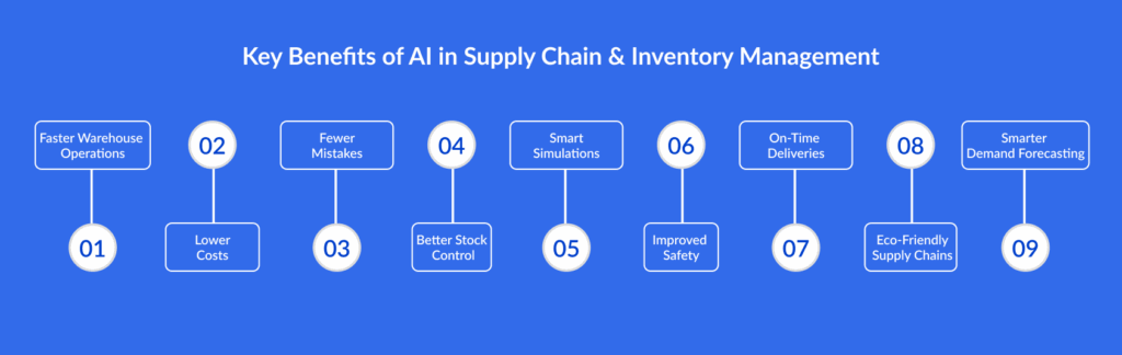 There are many benefits of AI in Supply Chain Management and AI in Inventory Management helps businesses work smarter and faster.