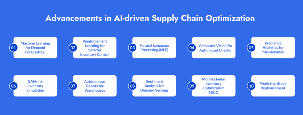 This AI method learns through trial and error. It helps businesses figure out the best time to reorder items and how much to keep in stock.