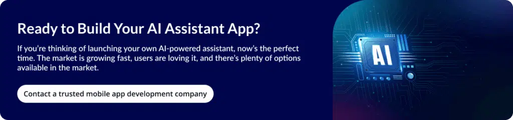 That’s why so many startups and businesses are now reaching out to an AI app development company or mobile app development company to build their own assistant app.