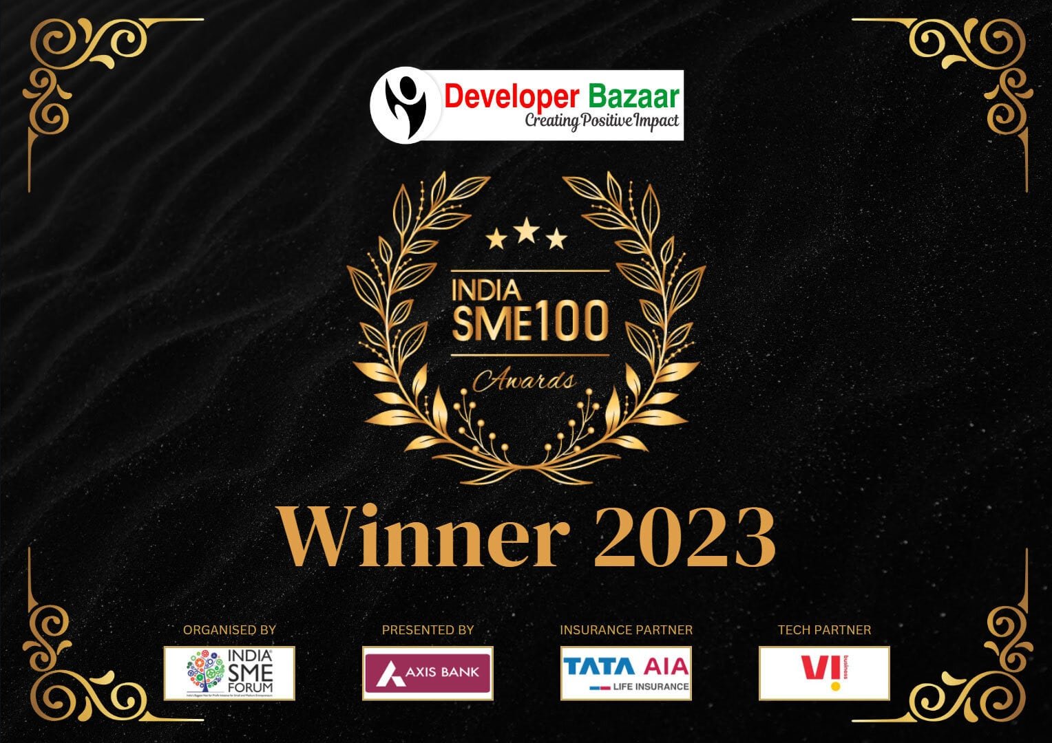 Developer Bazaar Technologies is thrilled to announce that it has been named one of the TOP 100 Winners of the 10th Edition of India SME 100 Awards 2023. This prestigious recognition underscores the company’s exceptional performance and commitment in India’s competitive business landscape.