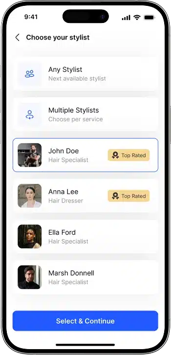 A user-friendly feature to schedule appointments in just a few taps by selecting services, preferred time slots, and stylists.